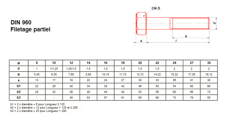 | VIS TETE HEXAGONALE PAS FIN FILETAGE PARTIEL DIN 960 ACIER CLASSE 10.9 BRUT – 27×80 | 27 | 80 | 1 pièce | Connaitre votre remise |